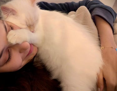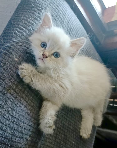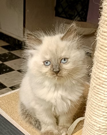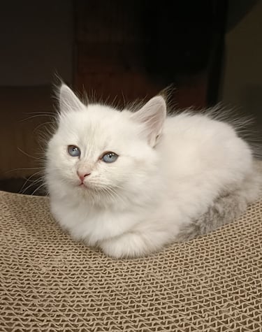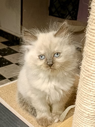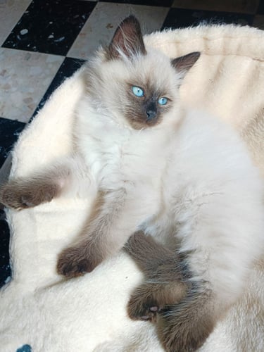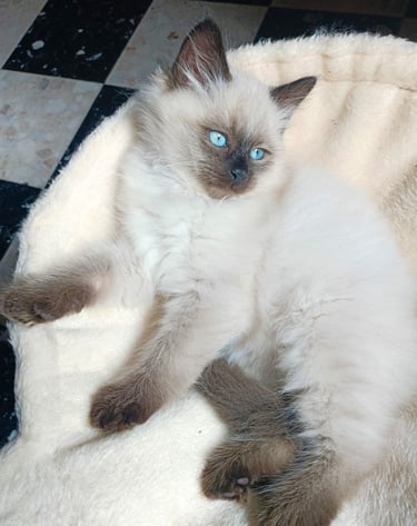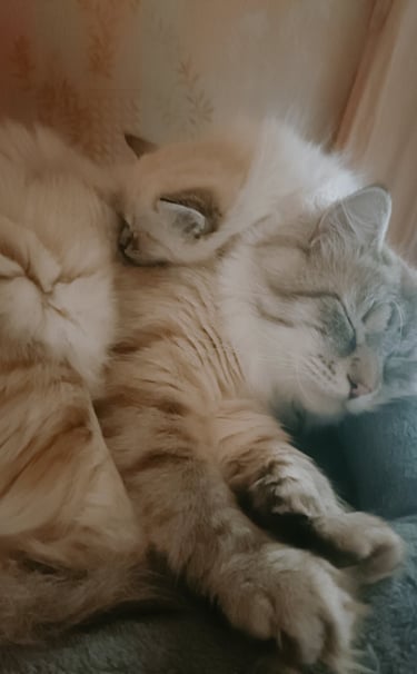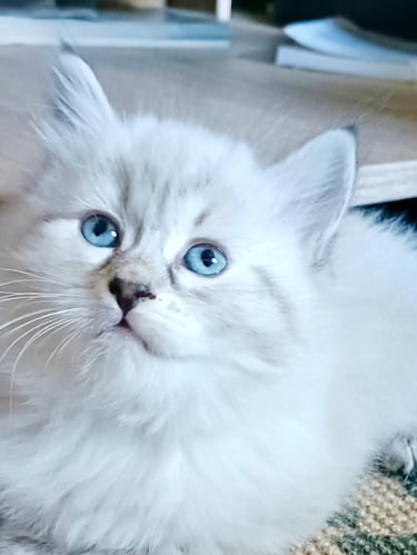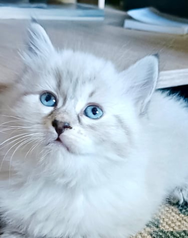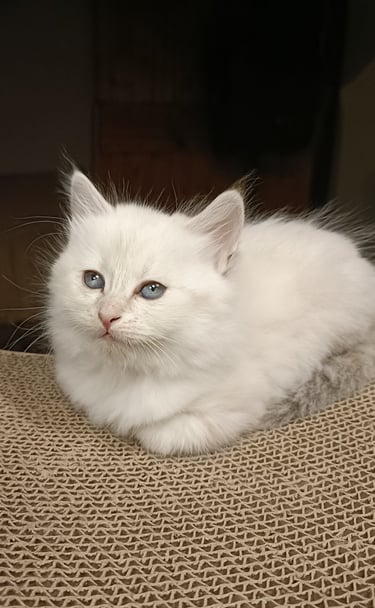 Le chaton sibérien, en particulier le mâle Néva Masquerade que l'on a adopté est un réel bonheur. Malgré l'allergie aux chats de ma fille, il vit avec nous dans notre appartement, elle est très heureuse, elle n'a pas les yeux qui pleurent ou d'éternuements et il est très joueur et très câlin. Merci à l'élevage Surya :-) Sophie de Reims
